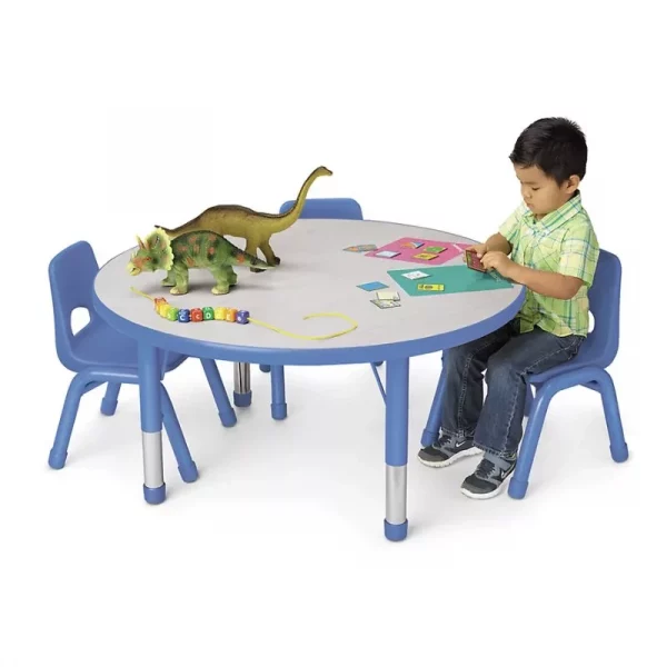 - Every child deserves a special place to sit, create, and share laughter, and this 4 ft round kids table in blue is the perfect setting. Designed to bring fun and function together, its sturdy build ensures safety, while its smooth surface invites endless creativity. Whether it’s a birthday party, a school event, or a craft-filled afternoon, this table provides ample space for little hands to color, build, and enjoy. The cheerful blue finish adds a pop of playful energy, blending seamlessly with vibrant party décor or themed setups. Its round shape fosters connection, encouraging kids to interact, play, and make new friends. Lightweight yet durable, it’s easy to set up, move, and store, making it a favorite for event planners, teachers, and parents alike. Let young imaginations flourish around a table designed just for them—because the best memories start with the right seat at the table!