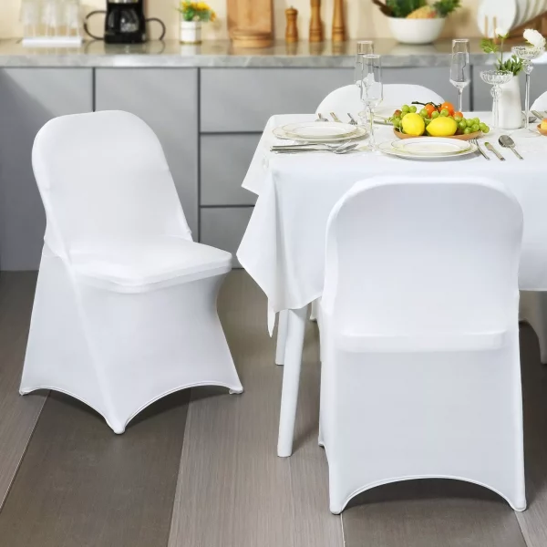 - There’s beauty in simplicity, and this spandex chair cover for plastic folding chairs proves it. With its refined fit and smooth texture, it takes an ordinary chair and transforms it into a work of art. The stretchable spandex material wraps the chair with ease, creating a seamless, wrinkle-free appearance that instantly elevates any event. Whether it’s a wedding, corporate function, or elegant celebration, this cover adds a layer of sophistication to your décor. Available in a variety of colors to complement your event theme, it brings a sense of unity and harmony to your tablescape. Its durable, high-quality fabric ensures it will look flawless from the moment your guests arrive until the last toast is made. Easy to maintain, this cover is wrinkle-resistant and can be used for multiple events, making it both a beautiful and practical choice for any occasion. Let your plastic folding chairs shine with elegance, and turn every seat into an experience.
